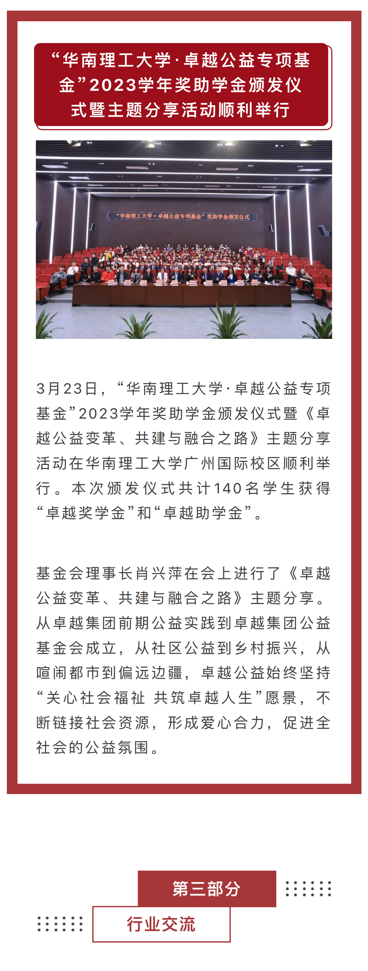 卓越集團(tuán)公益基金會3月公益月報(bào)